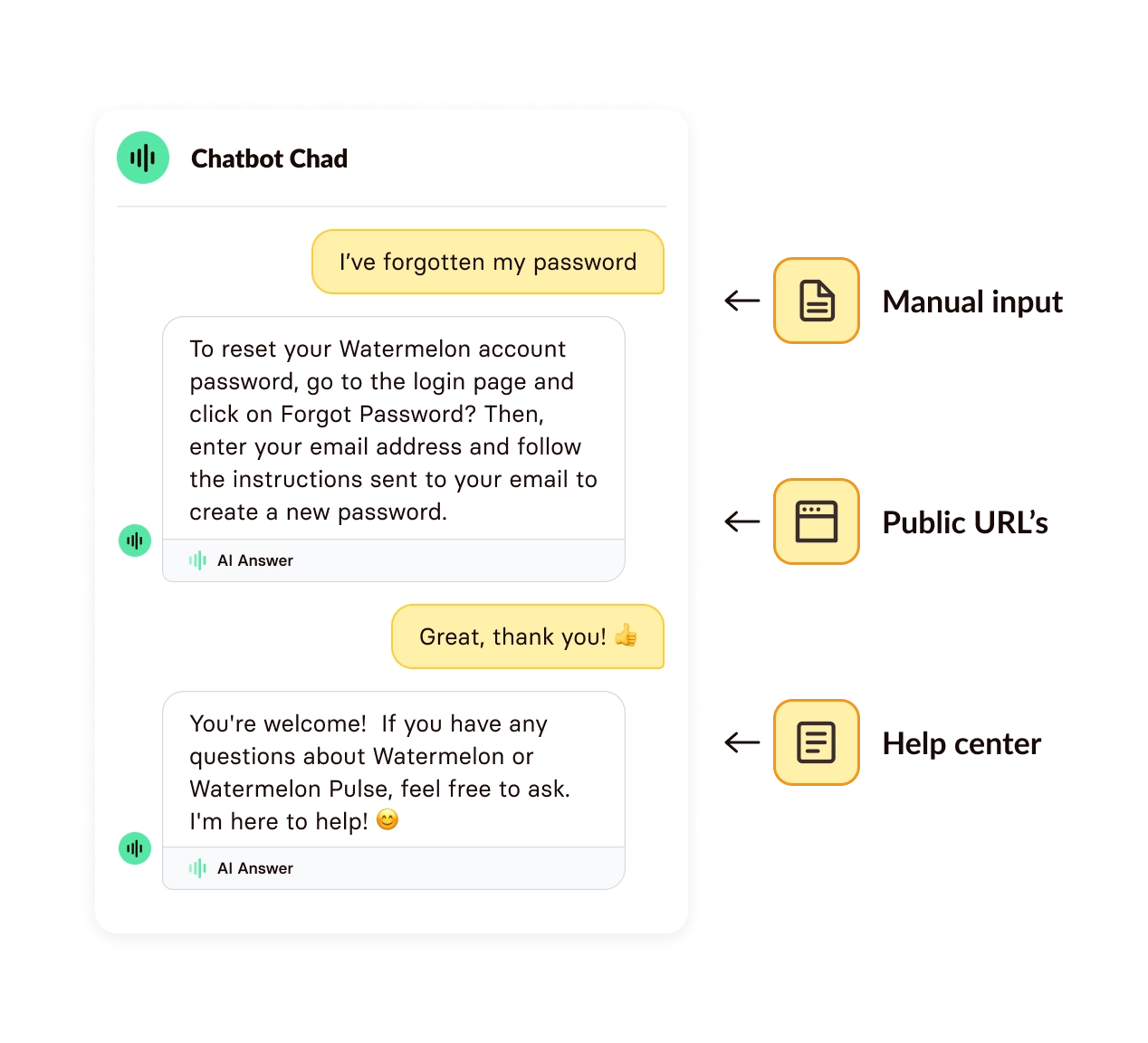 Watch our live product demo to see how to build an AI Agent trained on your data.